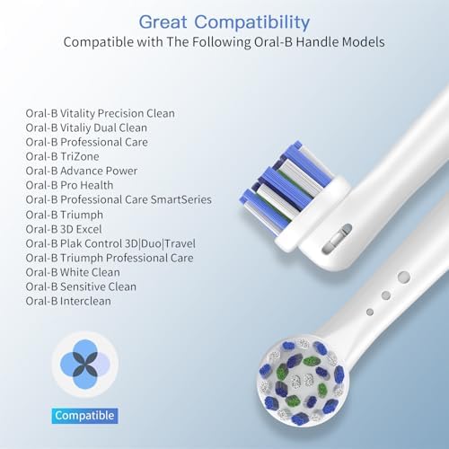 - ★【Great Compatibility】 Electric toothbrush head is compatible with the entire lineup of Oral-B rechargeable handles. (Except for Oral-B io Sonic, Pulsonic and io series toothbrushes). Fits Vitality, Triumph, Genius, Professional, and More.