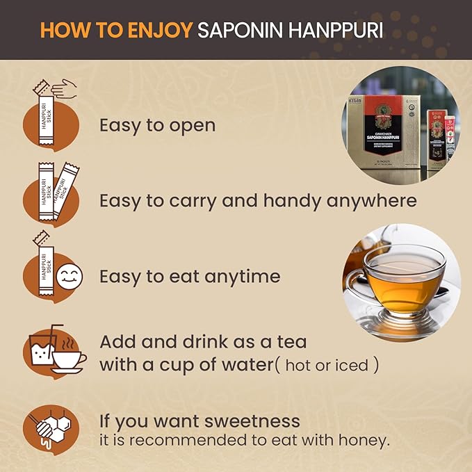 - Ready to take: you don't have to mix or make any specific formulation to take ginseng extract. This Saponin hanppuri uses small and simple stick pouches for endusers to carry or take anywhere, anytime.