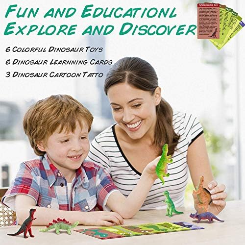 - A Fun and Educational Gifts for Kids: Present 6 beautiful dinosaur learning cards, each describing the history of a different dinosaur, and each card corresponds to a cartoon version of the dinosaur design, which greatly stimulates the imagination of children, making perfect dinosaur toys for boys and girls.
