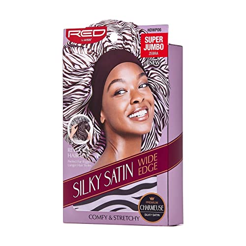 Red by Kiss Reversible Silky Satin Hair Cap Hair Bonnet with Wide Edge Double Wear Cap, Super Jumbo (Zebra)