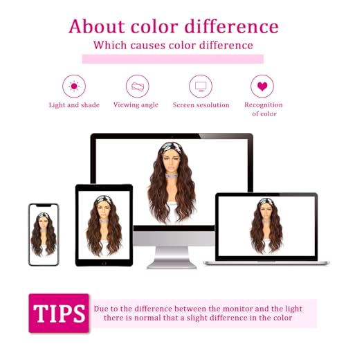 - Headband wig for Black Women,Length: About 26 Inches; Weight: 253g;Colors:Mix Brown; Density: 150% .This brown wavy wig is suitable for all hair types,whether you have long or short hair, straight or curly hair, you can wear it comfortably.