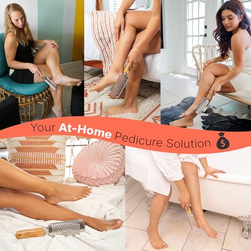 Foot File - Callus Remover Tool for Dead Skin Removal, at Home Pedicure Tools, Foot Rasp Callus Remover Feet and Heels, Smooth Soft Feet Using a Grater & Scraper (Bamboo & Stainless Steel) (1 Pack)