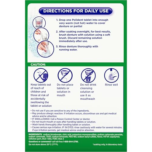 - Provides a better clean and 20% better stain removal vs. competitor brand (5); dissolve one tablet in warm water, soak your dentures overnight, brush them with a soft toothbrush and rinse thoroughly - refer to packaging for full directions