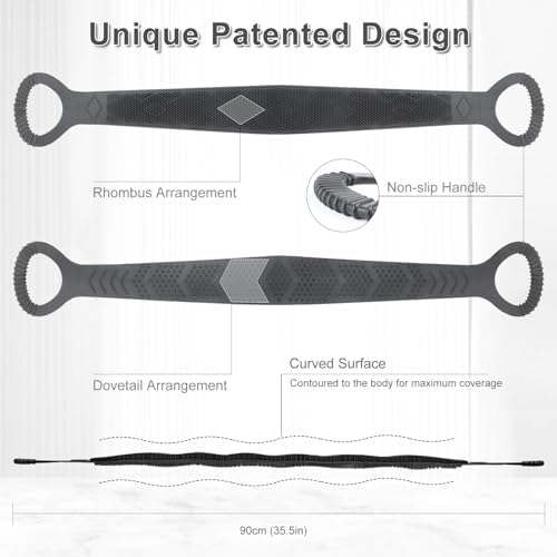 FREATECH Silicone Back Scrubber for Shower, 36" Dual-Sided Back Washer Exfoliator Strap to Clean, Exfoliate and Massage, Easily Cover The Entire Back for Men Women, Easy to Clean, Black