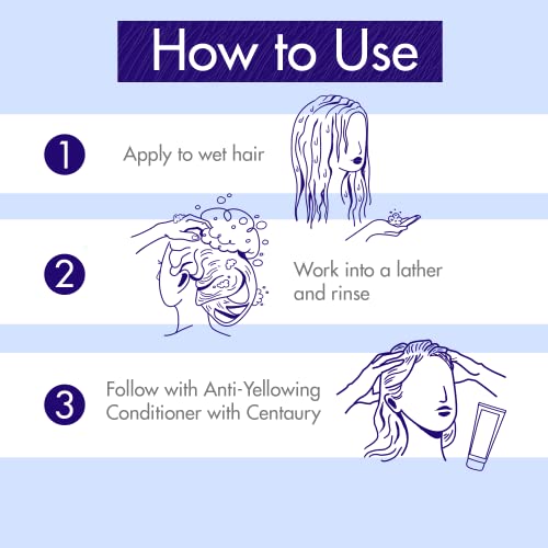 Klorane Shampoo with Centaury - Brightens Blonde, Platinum, Silver, Gray or White Hair - Neutralizes Unwanted Yellow, Brassy, and Copper Tones - Paraben, Silicone and Sulfate-Free - 13.5 fl. oz.