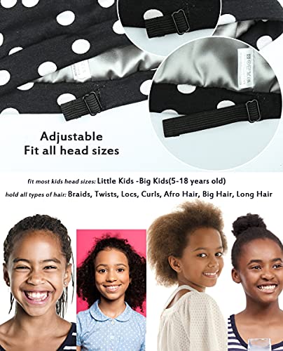 Kids Beanie Sleep Hats Bonnet for Night Sleeping Skull Cap to Keep Hair Smooth Adjustable Black
