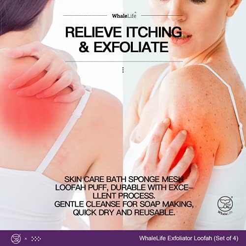 - PREMIUM QUALITY: Skin care bath sponges shower scrunchy mesh loofah puff, durable with excellent process. Gentle cleanse for soap making, quick dry and reusable.