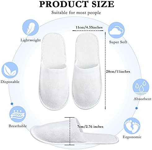 SATINIOR 30 Pairs Disposable Slippers, White, Medium, Unisex-Adults, Closed Toe, Non-Slip, Spa, Hotel, Travel, Home, Sanitary, Breathable, Fleece Cloth, EVA