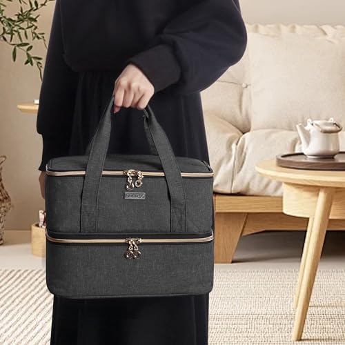 - LARGE STORAGE SPACE - The main compartment can hold a regular nail lamp (Refer to the top part dimensions 12' x 7.5' x 4.5'). The upper layer also provides versatile pockets for nail polish kits.