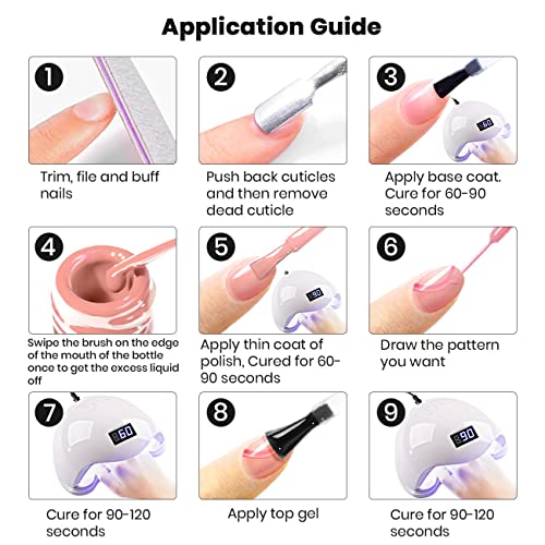 - BUILD IN THIN BRUSH DESIGN:New design with the painted gel nail polish and the thin skinny nail art brush combine,it is super convenient for the salon beauty salon or at home personal use for starters.Each bottle has a thin pen brush,no need to change and wash clean the drawing liner pen brush when doing the nail art
