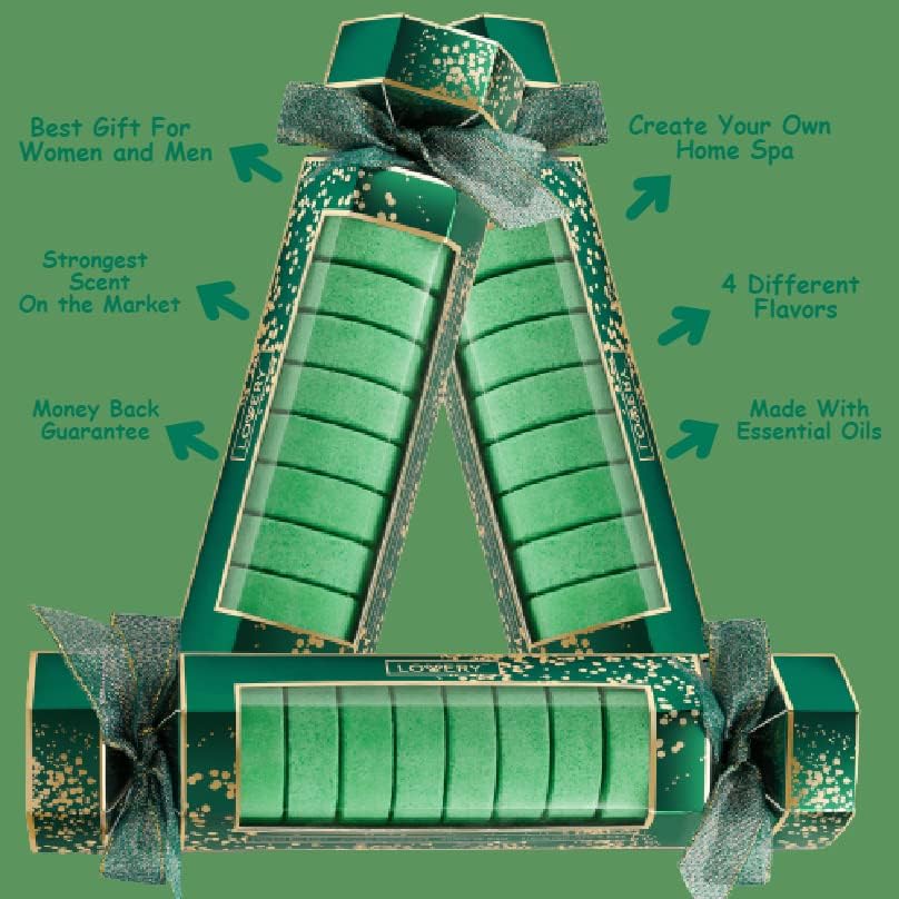 - 8 NATURAL ESSENTIAL OIL SHOWER MELTS: Relax and unwind with our exquisite Shower Vapor Tablets Set that includes 4 distinct and long lasting fragrances: 2 x Eucalyptus, 2 x Tea Tree, 2 x Peppermint & 2 x Spearmint -30g each. It comes wrapped in a cute candy popper box ready to gift. Our Shower Steamer Tablets set offers a versatile mix of well-balanced fragrances for aromatherapy, from stimulating & invigorating to calming & soothing.