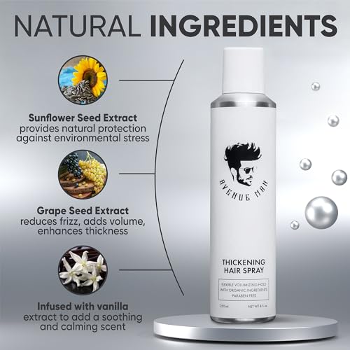 Avenue Man Hair Thickening Spray for Men - Professional Volumizing & Strong Hold Texturizing Spray for Men - Humidity Resistant & Easy Rinse Formula - Long-Lasting Mens Hairspray Extra Hold - 8.5 oz
