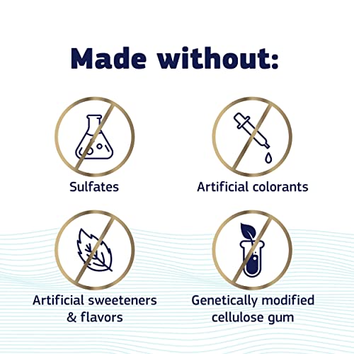 - Formulated WITHOUT: Sulfates, Artificial Colorants, Artificial Flavors, Artificial Sweeteners, Genetically Modified Cellulose Gum