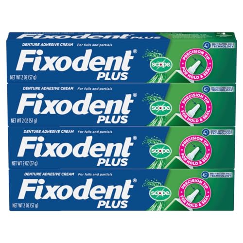 - You will receive (4) 2.0oz tubes of Fixodent Plus Scope Denture Adhesive