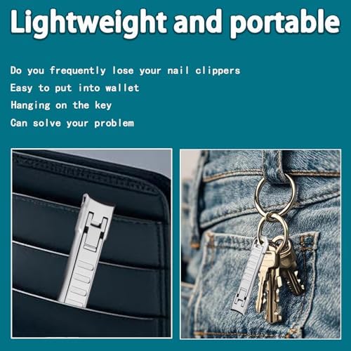 - 【Ultra Thin And Mini Travel Design】This fingernail clippers designed has a conveniently built-in nail file and folds flat,the thickness of the finger nail clippers is only 0.4cm/0.16in,length is only 6.5cm/2.56in,fingernail clipper easy carried in wallet or bag;It can also be hung on the key,Portable keychain nail clipper