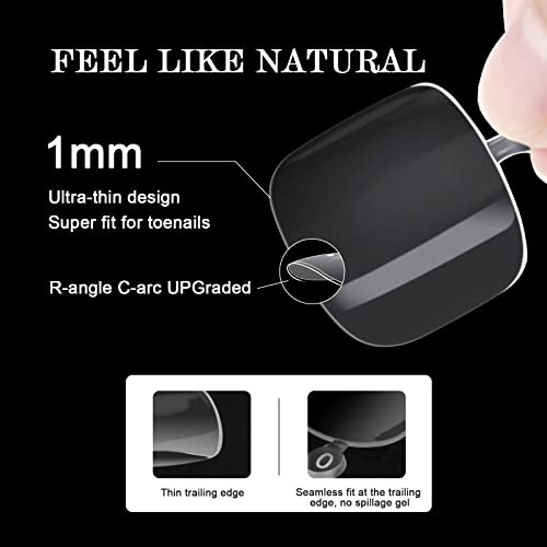 SAVILAND Toenail Tips and Solid Glue Gel: 500 PCS Clear Press on Toe Tips with Nail Glue Gel Base & Top Coat U V Light Pedicure Kit for Salon Home DIY Gift For Women