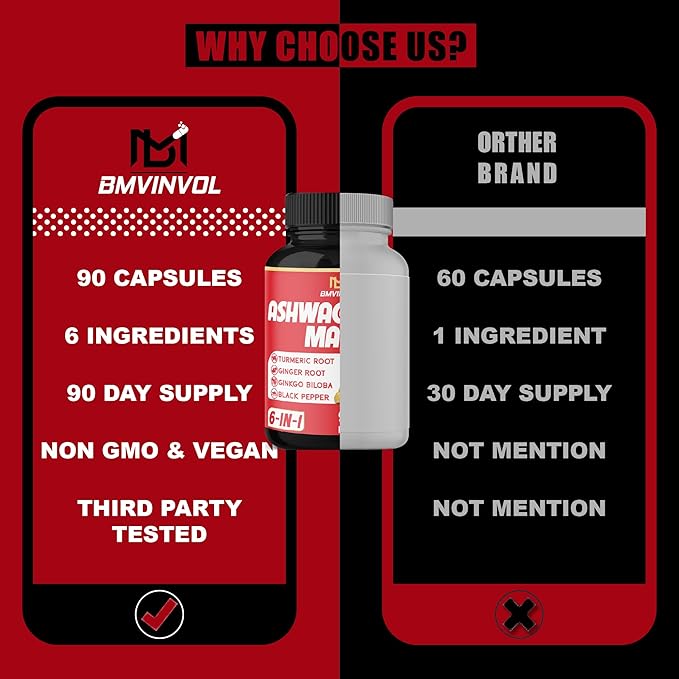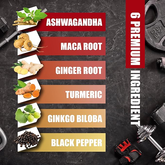 - Ingredeints: Ashwagandha, Maca Root, Turmeric Curcumin, Ginger, Ginkgo Biloba, Black Pepper.