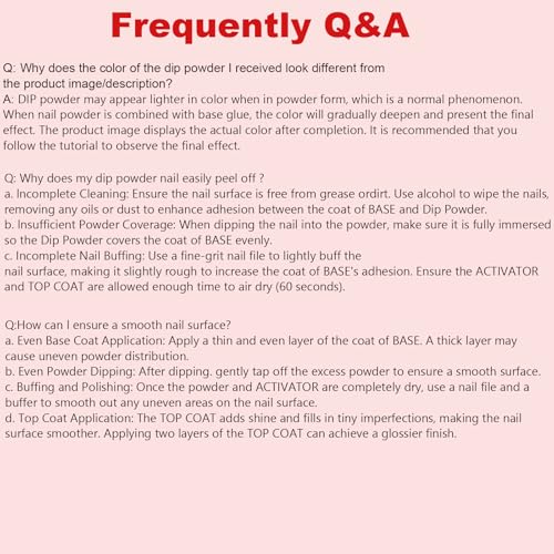 - DiP powder tends to have a lighter color when in powder form, which is a normal phenomenon. When combined with the base adhesive, the color will gradually deepen and present the final effect. The product image displays the actual color after completion; Different displays/lighting may affect color perception