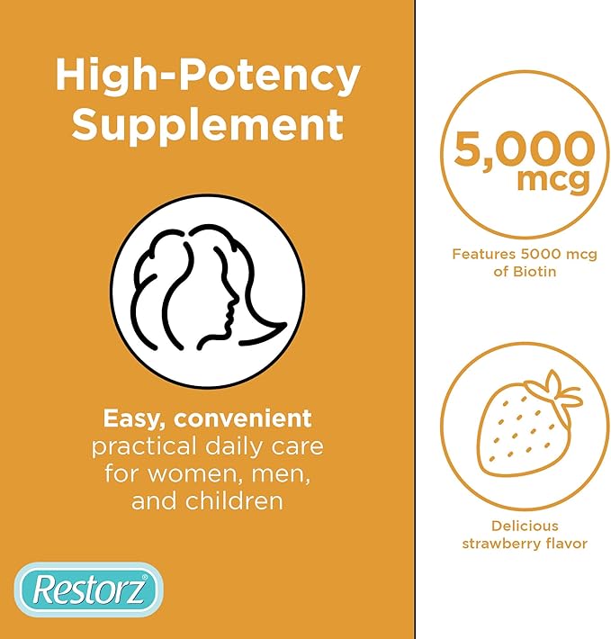 - PURE, NATURAL NUTRIENTS - Restorz biotin for men and biotin for women is gluten free, non-GMO, vegan friendly biotin gummy boost, and free of additives, fillers, or binders for trusted quality.