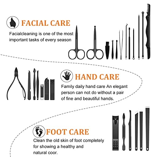 - ❤【Professional Manicure Set】: Professional manicure kit and nail clippers set includes 25 pieces of care tools for facial care, nail care, and pedicure care which can meet all of you needs. Just enjoy the happiness of nails treatment and grooming Relax care.