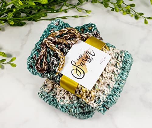 Emerald Pine 3 Pack Set - Soap Holder Crochet - Handmade Cotton Soap Sack - Bathing Accessories