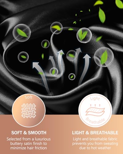 - ❤️PREMIUM SILK SATIN: The bonnet part is made of premium butter silk satin, which is breathable and smooth, and can keep hair moisture too. The long band is made of stretchy spandex material, Compared common elastic band Bonnet, this Bonnet would not make you feel tight and leave an imprint on your head, and much cozier.