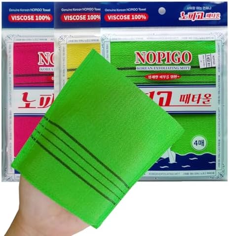 The Original Korean Exfoliating Mitt Body Scrub-12pcs (green4 red4 yellow4). Asian Exfoliating Bath Washcloth for Dead Skin, Bath Sponge,Body exfoliate Glove.