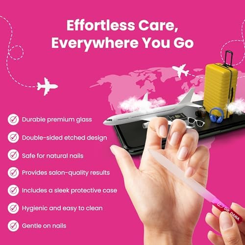 Dr. Dana Glass Nail File with Case - Premium Double-Sided Etched Crystal Nail File for Natural Nails, Protective Travel Case Included – Ideal Self Care Gift, Professional Quality by Dr. Dana