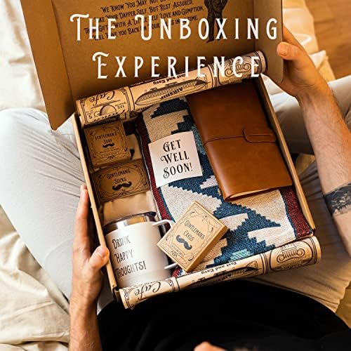 Get Well Soon Gift Basket Men | Care Package For Men | Includes Soft Blanket, Insulated Mug, Journal, Pen, Soap, and Cozy Socks | Packaged In a Vintage Gift Box