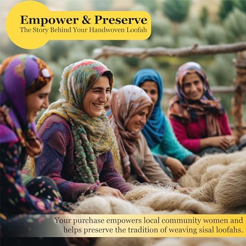 Natural Handwoven Sisal Loofah Body Scrubber - Organic Shower Sponge Made from Premium Agave Fibers - Arabic-Turkish Style with Bar Soap Pouch - Natural Body Scrubber for Men & Women