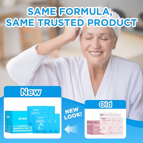OK TAPE No Water Shampoo Caps (6 Pack) 3 Scents, Rinse Free Shower Cap for Elderly, After Surgery, Camping, Shampoo and Conditioner Hair Wash Cap (Lavender, Verbena and Cucumber Scents)