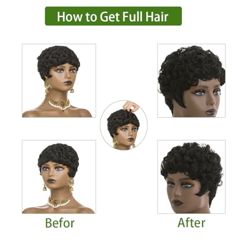 Short Pixie Cut Wigs for Black Women Synthetic Hair Afro Pixie Wig Black Color Short Wigs for Black Women Short Curly Pixie Wigs for Women (Natural Black)