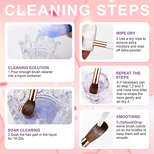 - 【Clean and Storage】After every application on single nail, make sure to clean the acrylic brush with brush cleaner to prevent the acrylic powder from clumping.Do not use acetone, it will remove the shine, make acrylic tacky and buildup residue. After cleaning, remove moisture with a paper towel, reshape, and keep it in the upright position.
