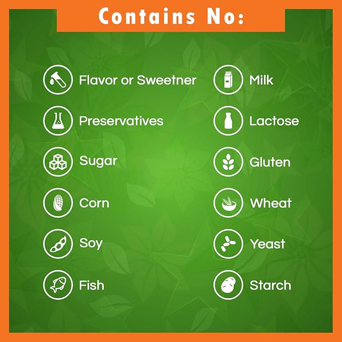 - No Artificial Color, Flavor or Sweetener, No Preservatives, No Sugar, No Milk, No Corn, No Soy, No Egg, No Lactose, No Gluten, No Wheat, No Yeast, No Fish. Sodium Free.