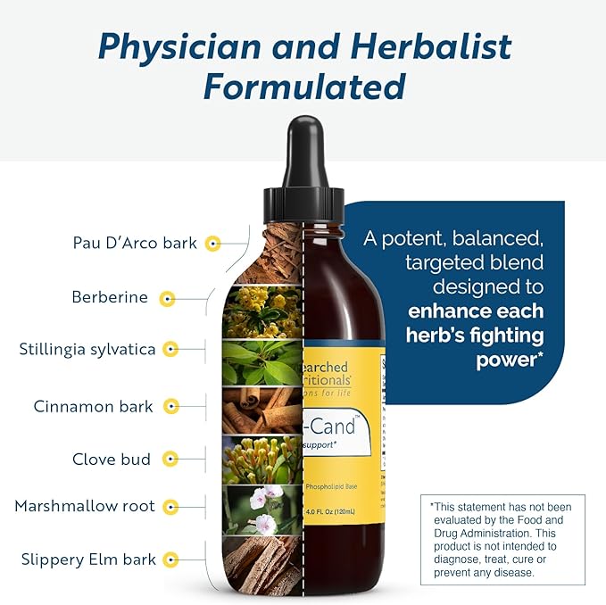 Researched Nutritionals Elim-A-Cand - Candida Support - Microbial & Gut Health Supplements with Berberine, Slippery Elm, Cinnamon Bark, PAU D'Arco & Marshmallow Root - Herbal Detox Tincture (4 Fl Oz)