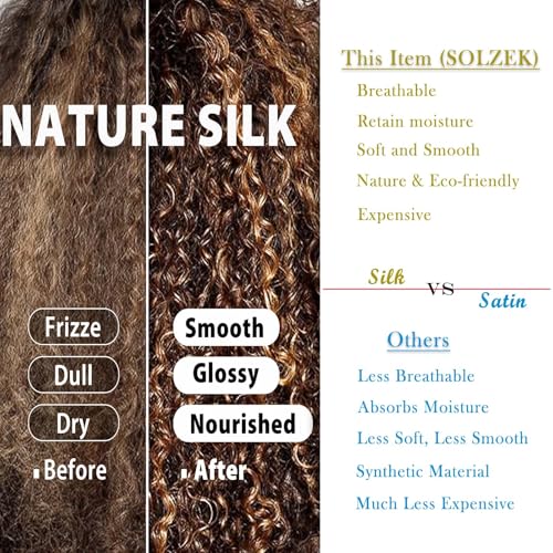 - 100% Mulberry Silk Lined: This silk hair wrap for sleeping is comfortable, breathable, skin-friendly, but more importantly it minimizes the friction between your hair and pillowcase, real silk is a great material that reduces frizz, tangling, split-ends, breakage, dryness, knots and hair loss