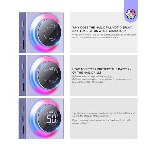 - Upgraded protection system that will automatically shut down on overheating. Stop using it immediately and let it sit for 3 minutes and then restarting the device will restore it. If the nail drill won't work, please don't worry, make sure the cable is fully connected until the LED screen displays the prompt and charge for 6-8 hours. Then the nail drill will normally work.