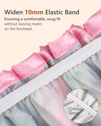 - 🎈Superb Waterproof -- This shower cap features a double layer and a wide elastic band, ensuring a snug fit without leaving marks. The unique 20mm lace curves outward at a 30-45 degree angle, effectively isolating water droplets and keeping the forehead and neck dry.