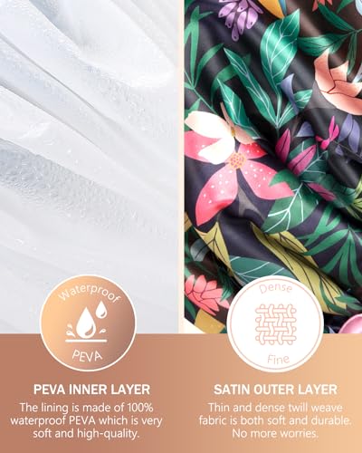 - 🎈Reusable -- Made of high-quality polyester and eco-friendly PVC fabric, our shower cap is durable and does not snag, wrinkle, fade, or shed. It can be washed and reused up to 1000 times, reducing waste and being environmentally friendly.