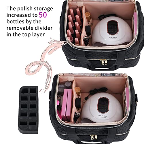 Nail Polish Organizer Case,Nail Storage Organizer Holds Nail Lamp & 50 Bottles Nail Polish,Travel Nail Tech Case,Nail Kit Organizer Bag Fits Nail Supplies & Manicure Tools,Black (Patented)