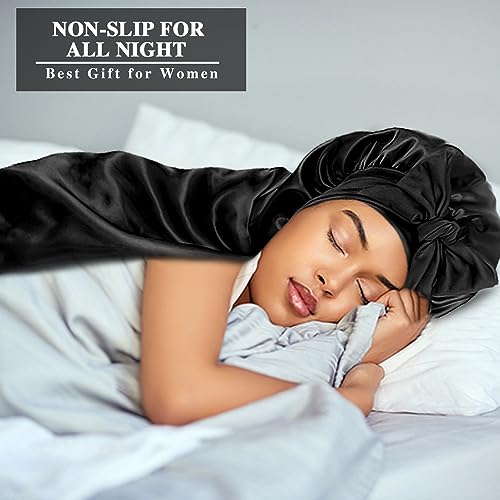 3pcs Long Satin Bonnets for Braids Locs, Large Silky Hair Bonnet with Tie for Women Sleeping Curly Hair, A