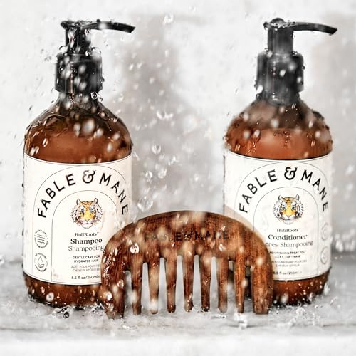 Fable & Mane Scalp Massager Comb, Wide-toothed, 100% Natural Ebony Wood, Detangles Strands and Gently Massages the Scalp