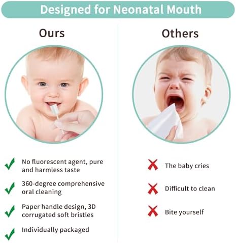 - Comfortable Material : This baby tongue cleaner toothbrush is made of 100% sterilized gauze and handle is made of food grade paper. BPA FREE , No additives.