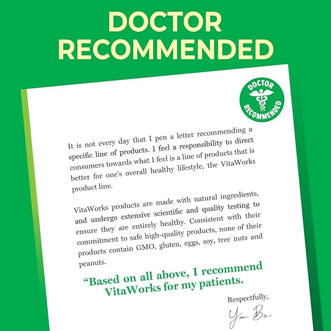 - DOCTOR RECOMMENDED: VitaWorks spares no time researching, testing, and analyzing our products. We go to great lengths to ensure that we deliver the highest quality products possible with top-notch ingredients. All of our supplements are backed by the endorsement of an acclaimed family doctor.