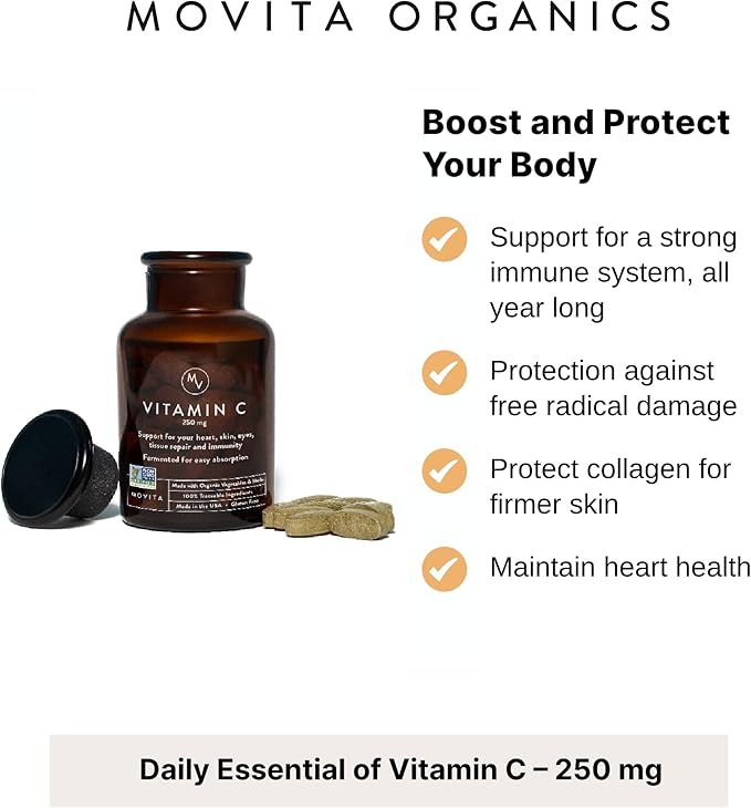Movita Organic Vitamin D3 2500IU, Bottle Fermented Vitamin C 250mg Bottle