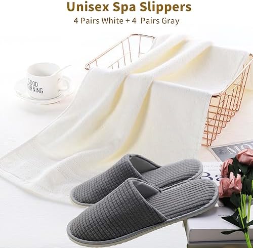 Disposable Slippers for Guests, 8 Pairs, Non Slip, Washable SPA Slippers for Hotel, Guest, Travel, Bride, Women and Men