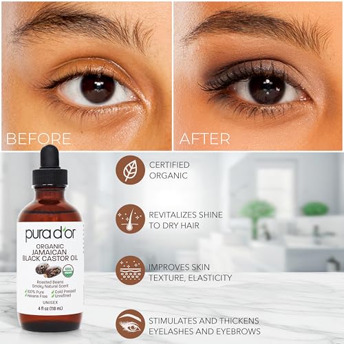 - ACHIEVE LUSCIOUS EYE-POPPING EYELASHES: PURA D'OR Organic Jamaican Castor Oil for eyelashes help conceal thin, uneven eyelashes by promoting thicker looking lashes.