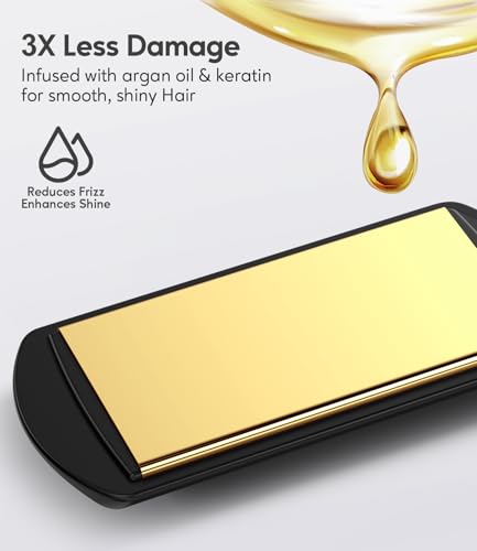 - [3X Less Damage While Styling] Farery mini travel hair straightener cares for your hair by adding argan oil, keratin & tourmaline into straightener plates. Ceramic coating plates distribute heat evenly, diminishing the risks of heating damage and unevenly straightened hair