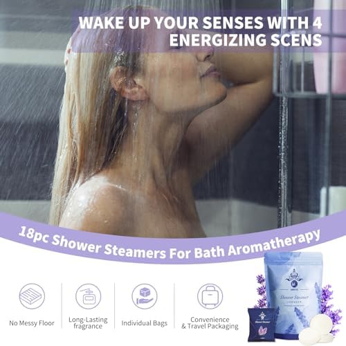Shower Steamers, 18 Pack XL Lavender Shower Bath Bombs Aromatherapy with Essential Oils, Self Care Gifts for Women Wife, Unique Gifts for Dad、Mother and Wife
