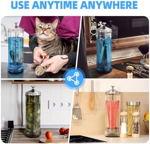 - LARGE ENOUGH SIZE – Sterlizer jar can hold up to 53 oz / 1500 ml solution (Size is 11.5” H x 3.9” W). The transparent glass disinfectant jar also lets you know which tools in it.Its functionality extends to barber shop, salon, medical, dental, bathroom, kitchen, and other areas need cleaning purpose